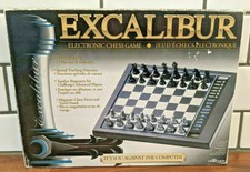 In the last few years through spectacular growth and widened horizo n s Excalibur has become one of the most prominent electronic game m a n u f a c t u r ers in the world. Touch Chess New York Times Deluxe Talking Touch Chess Alexandra Chess Station Excalibur Chess Game Clock Grandmaster Chess Computer Ivan II King Arthur Kingmaster III Einstein Chess Wizard Phantom Force.